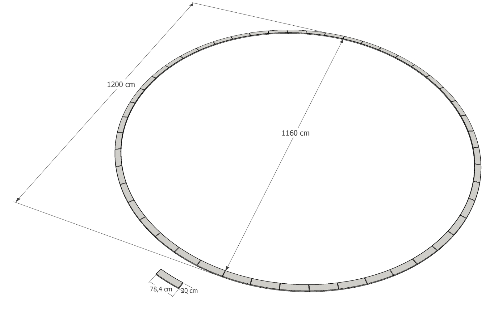Zestaw składa się z betonowych elementów łukowych, które po połączeniu tworzą idealny okrąg. Dzięki zbrojeniu stalą oraz odporności na mróz i wilgoć, obrzeże przez wiele lat zachowuje swoje właściwości i wygląd – bez konieczności impregnacji czy napraw.